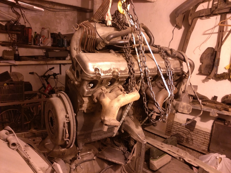 Вешал балку для демонтажа двигателя, один ее конец соскользнул и приземлился на край капота