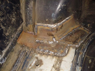всё это начиналось месяц назад. я не в теме вопроса был про сварку кузова,варил до этого только тигом аргоном алюминий. был у меня сварщик, по рассказам преварил пол-города машин, сразу в бой. посрезал оба порога ( порогов ещё не было), повырезал кучу кузовных элементов, что потом я устал включать свою фантазию. через пару дней пришли пороги и задние арки. сварщик примерил правый порог и арку , и приварил. примерял без двери. нутром я чуял что-то здесь не так. засел на пару дней в интернет, есть очень хороший ресурс по сварному делу, я там только по алюму общался. там есть очень замечательная темка - сварка гнилого авто. всё очень практически детально расписано с фото. итог - мало того, что сварной варил всё сплошными швами( метал конкретно покоробило), так когда я выставил дверь - передняя часть порога ушла вверх на 2см. пришлось частично всё разрезать и осаживать порог получилось в принципе не плохо, а поведенный металл на заднем крыле будем вытягивать обратным молотком.