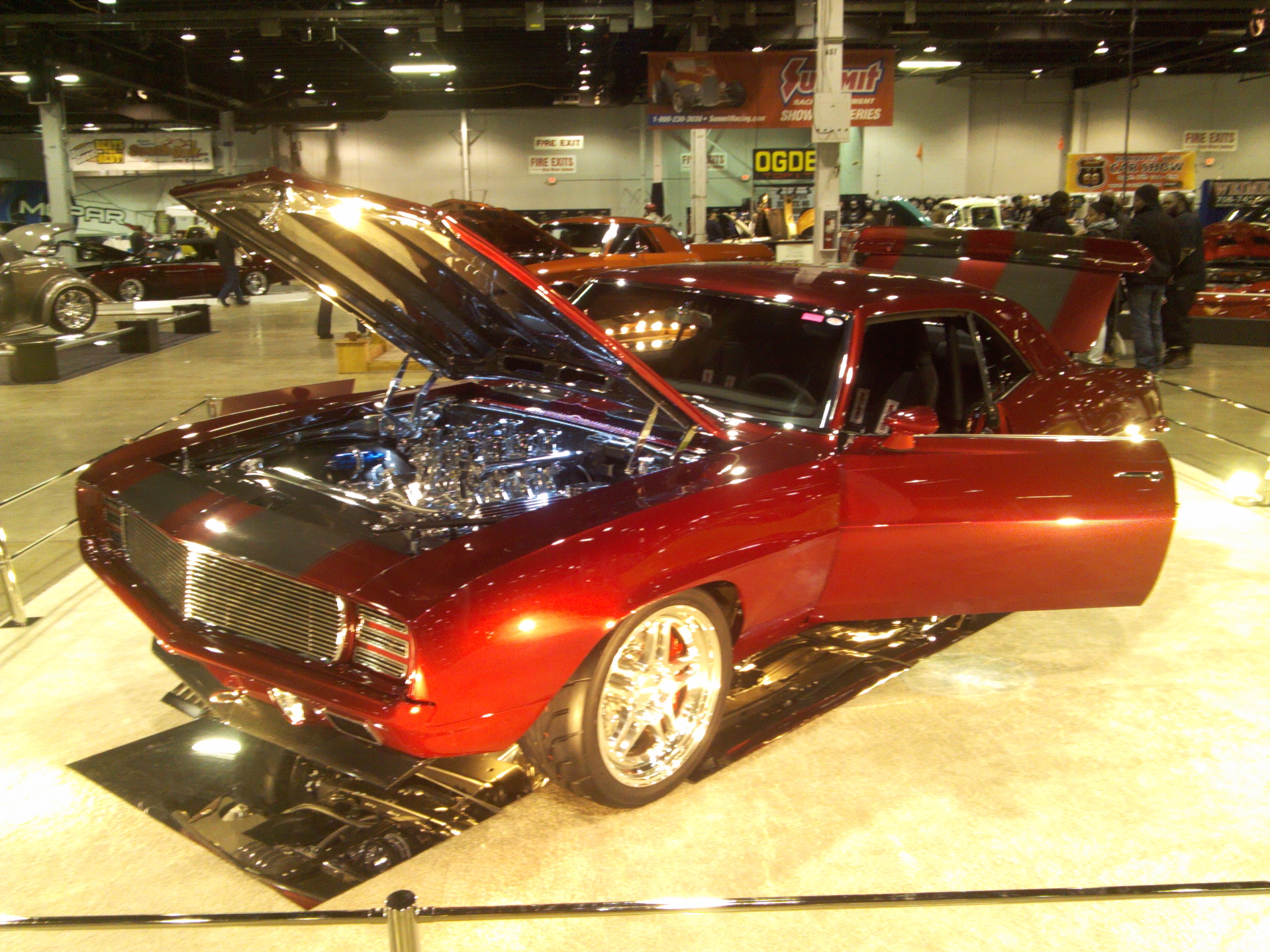 Немного двухколёсной техники и NASCAR. Выставка огромная, все эти фото - даже не четверть, а сколько я успел обойти за 40 или 50 минут. Немало продавцов деталей: колёс, зеркал, фар, ГБЦ, моторов и т.п. Тут же могут сделать татуировку, если есть желание. В общем, рябета делают деньги, но, чёрт побери, как красиво это делают!