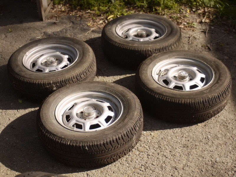 2 зимние шини на дисках R14 (черные - стояли сзади - ET35):