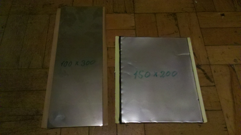 Есть вот такая вибро, термо изоляция, размер на фото, основа нержавеющая и алюминиевая фольга.