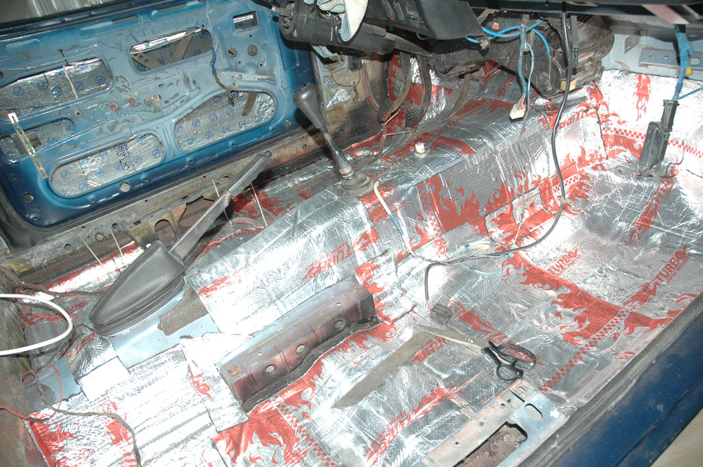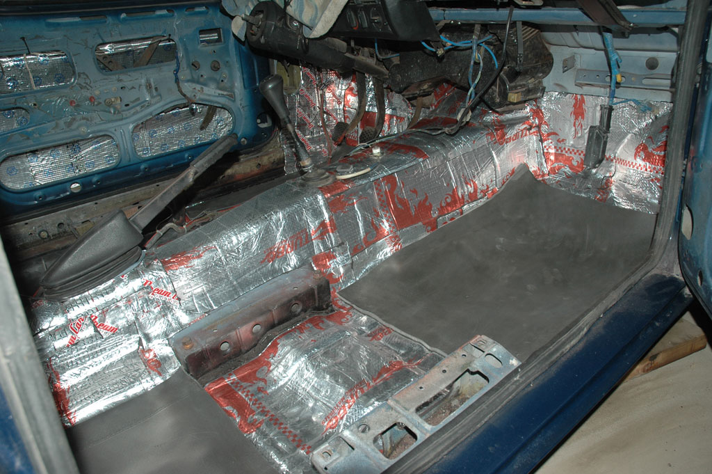 Нашёл и приготовил ковёр в состоянии, близком к идеальному. Постирал (погладил), но класть его на родную "шумку" не позволяет совесть. Ибо родная "вхлам", залитая тормозухой, ОЖ, водой и песком. Закупился современной ШВИ. Сначала положил 3мм битумную, затем где ноги водителя и пассажиров - ещё 3мм с приваренным спленом 8мм. Потом сверху накрою ещё раз 8мм спленом и ковёр.