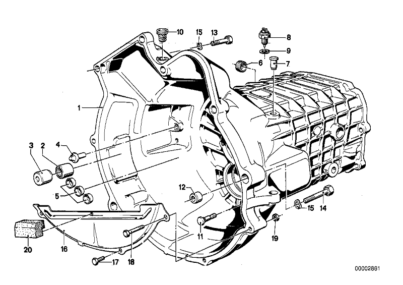ищу детали:хомут крепления приемной трубы 18 21 1 245 957(№15) и скобу 18 21 1 245 956 (№ 16) -фото 2(ставились на 315,316,318,318i,320 и 320i), кожух (№ 16) фото 1 от Getrag 242 и заглушку №10.