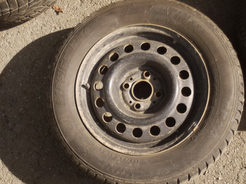2 зимние шини на дисках R14 (черные - стояли сзади - ET35):