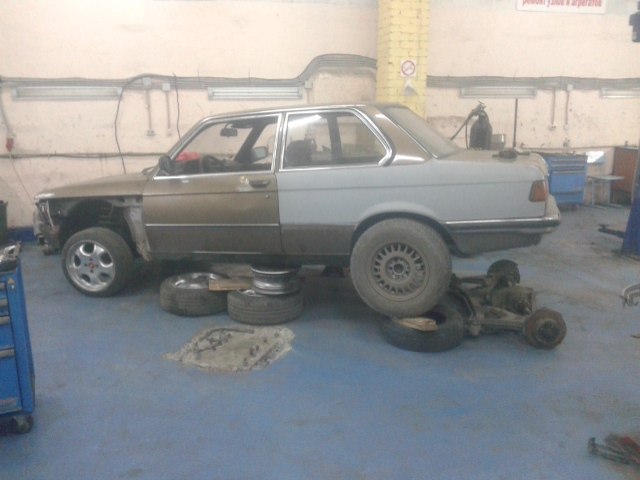 забрал вчера ночью сложную балку е34 под толстые привода и с редуктором от 535. Притащил на работу. Разобрал всю. Выкатил родную 323 балку. Много мерили и думали как сделать чтобы все было ровно. Сделал так - отрезал гумики от балки 535, прикрутил их на машину. Взял уголок и хорошо приварил его к гумикам. Дальше отрезал от балки лишнее, и приварил гумики. Там есть нюансы по смещению гумиков назад, чтобы колесо стояла ровно в арке, кто будет делать увидит, ничего сложного. обварил что получилось и прикинул на машину. Пока немного огорчает насколько торчит колесо из арки. Подумаю как уменьшить колею на такой балке. И еще нужно приварить к задним лонжирам, подушку редуктора от е32-34, для этого придется нишу запаски кромсать опять.