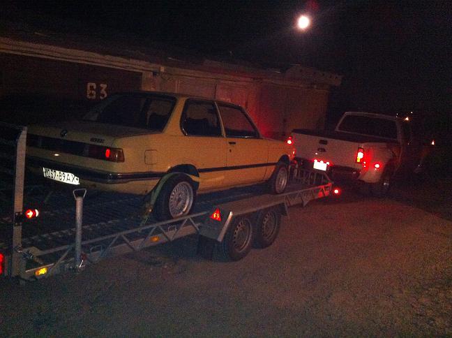 Дабы не испытывать судьбу и не подвергать машину стрэсу в связи с переездом, принято было решение перевезти на лафете! И вот мы дома!