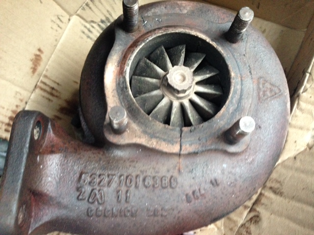 Вот, кстати, фото старой улитки, раз уж речь об этом пошла. Трещина неприятная, но не критическая. Слышно, конечно, было что подсекает. Планировал турбинку разобрать, заварить с медью, затем охлаждать в горячем песке около суток. Или купить асбестовой ткани и завернуть в неё до полного остывания. Теперь торопиться не буду. 8)