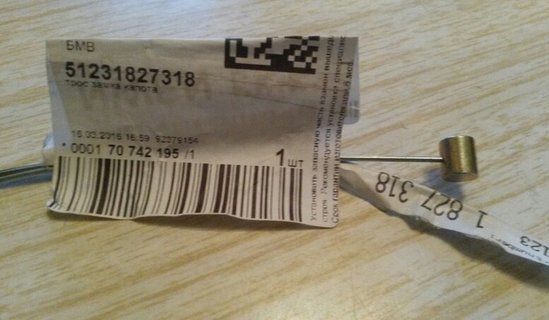 Трос открывания замка капота.