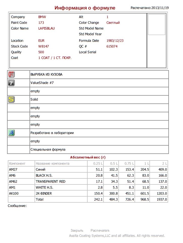кому нужна формула BMW e21 в системе DuPont пишем код краски в тему