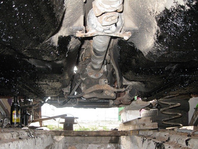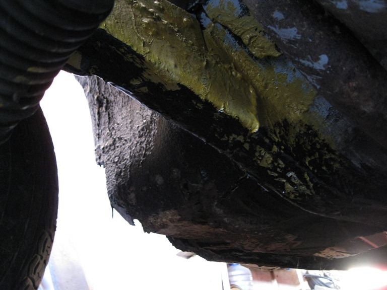 Снизу обрабатывал преобразователем и самопальной мастикой (прошу сильно не критиковать, делаю как могу и на сколько позволяют финансы). Мастику варил из битума, добавлял отработку (1 : 1), алифу, пластилин, нажёванные жвачки