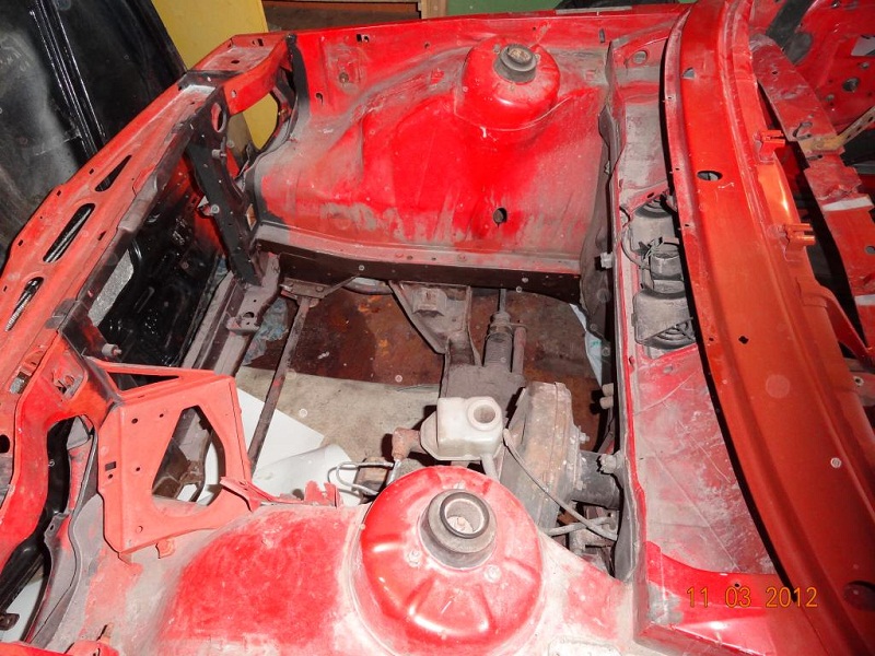 Это тот кузов который 3й у меня был, фото каким он был у меня к сожалению нет, его никто не красил, это заводская краска, крышка багажника от моей первой, и капот тоже, переварены пороги уже, низ передка восстановлен, обработано днище, подкрылки, пол в салоне..