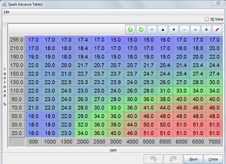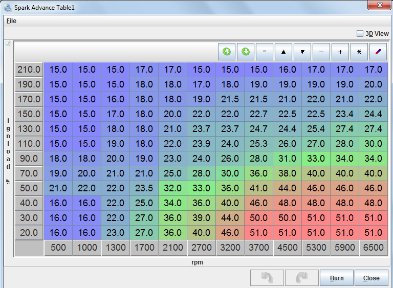 решил недолго думая поправить ситуёвину с зажиганием, переписал немного карту и поехал проверять. уух. 3 градуса делают своё дело! +0.1 бар на 100 оборотов ниже и куча попаданий в него )