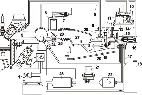 1) Пусковая форсунка управляется термореле (номер 4 на приведённой Вами схеме).