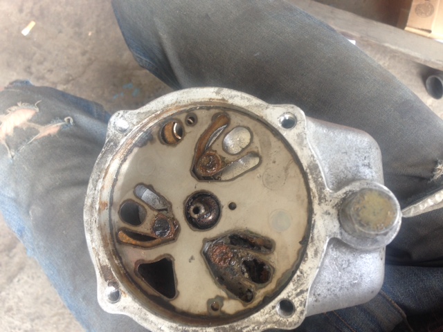 Фары в итоге собрал на новых уже элементах. Заодно перетряхнул задние фонари. Отмыл, поставил новые стёкла. Перекинул на новую турбину фитинги. И приступил к самому грустному - к компрессору кондиционера. Вскрыл его. Из него вылилось некоторое количество воды смешанной с маслом... состояние агрегата внутри не внушает оптимизма. В настоящее время он "в клине", поршни не ходят. Всё ржавое. Буду искать аналогичный и ковыряться с этим. Но, боюсь, с моим уже ничего не светит: слишком глубокая коррозия...