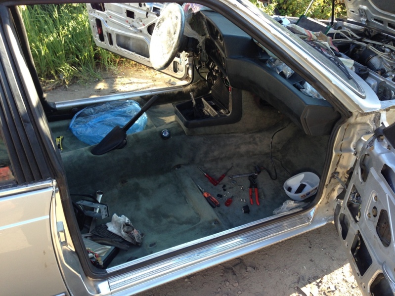 Сегодня ударно потрудились над сборкой салона. Старая термоизоляция трубки кондиционера совершенно деструктировалась, я приобрёл ленту для термоизоляции выхлопных труб и использовал её. Думаю, эффект будет аналогичный. Старая термошумоизоляция на полах в салоне, конечно, в основном в не очень хорошем состоянии. Поэтому поверх старого поролона мы закатали весь салон в свежую шумку. Наконец, застелили ковёр. Машина начинает обретать всё более законченный вид...
