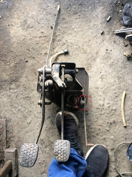 К кузову приварена петелька из металла с отверстием примерно 14 диаг. На лапке педали есть небольшой шток, на который одевается резиновая ВТУЛОЧКА и вставляется в это отверстие. Вот эта резиночка и разбилась у меня вдрызг. Прошерстил все возможные группы в телеграмм по городу - нет ни у кого ( или просто ленятся посмотреть). Они же дешевые ) Короче тачка почти стоит из за какой то хрени (